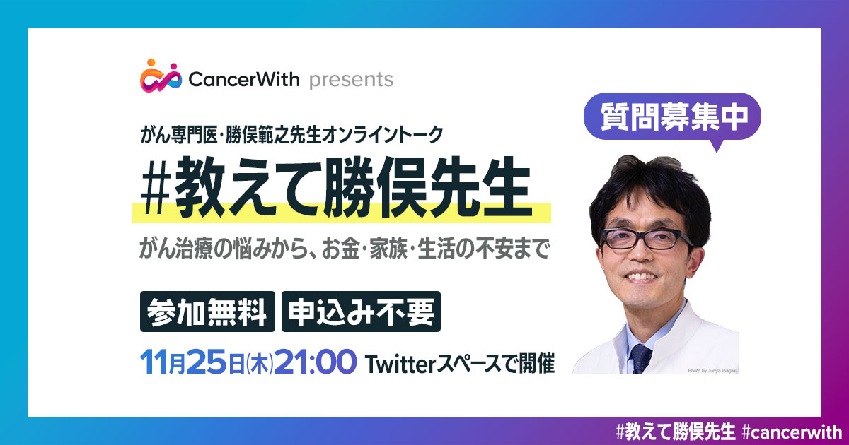 がん専門医でCancerWith顧問も務める勝俣範之先生のオンライントークを開催します
