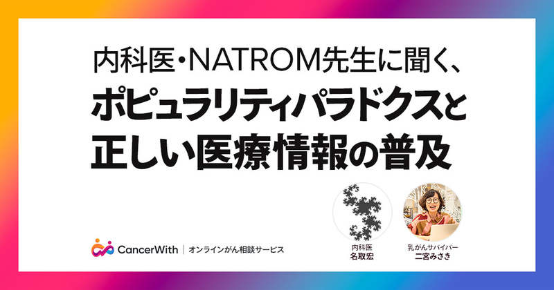「診療室では伝えられないこと」NATROM先生に聞く、ポピュラリティパラドクスと正しい医療情報の普及