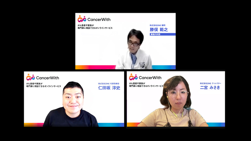 仁田坂淳史(以下、仁田坂)株式会社ZINEはメディアの受託制作を続けていくなかでがん患者さんの抱える深いペインを知り、オンラインがん相談サービスCancerWithの立ち上げへとつながった経緯があります。メディアからはじまった企業としては、患者さんの知識や状況などによって、得られる情報に差があってはならないと考えています。がんを起因とした情報の非対称性は根深く、聡明でリテラシーの高い方ががんに罹患した後、エビデンスに乏しい医療を選択してしまう、といった例をたくさん見てきました。ぜひ標準治療こそが最高の治療法であると、CancerWithを通じて啓蒙していきたいです。